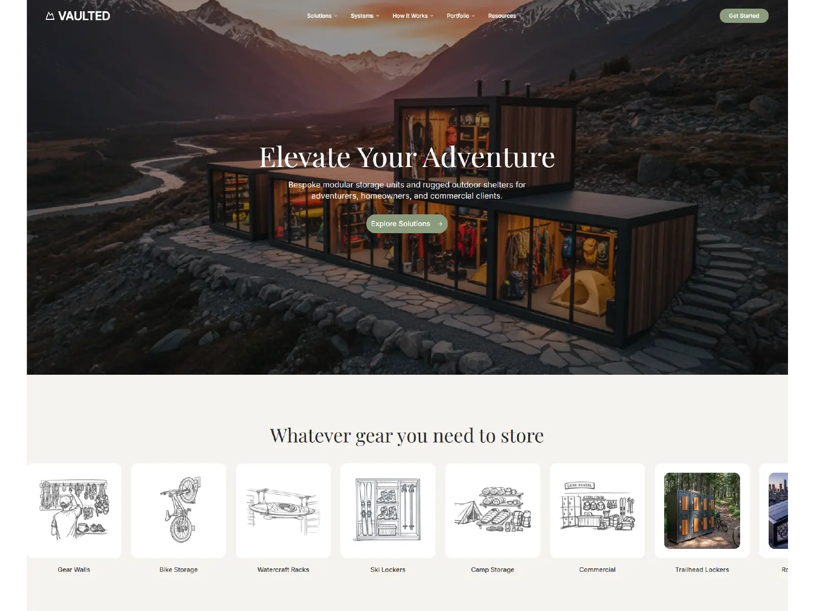 A structured website that showcases modular outdoor storage through environment-led storytelling.