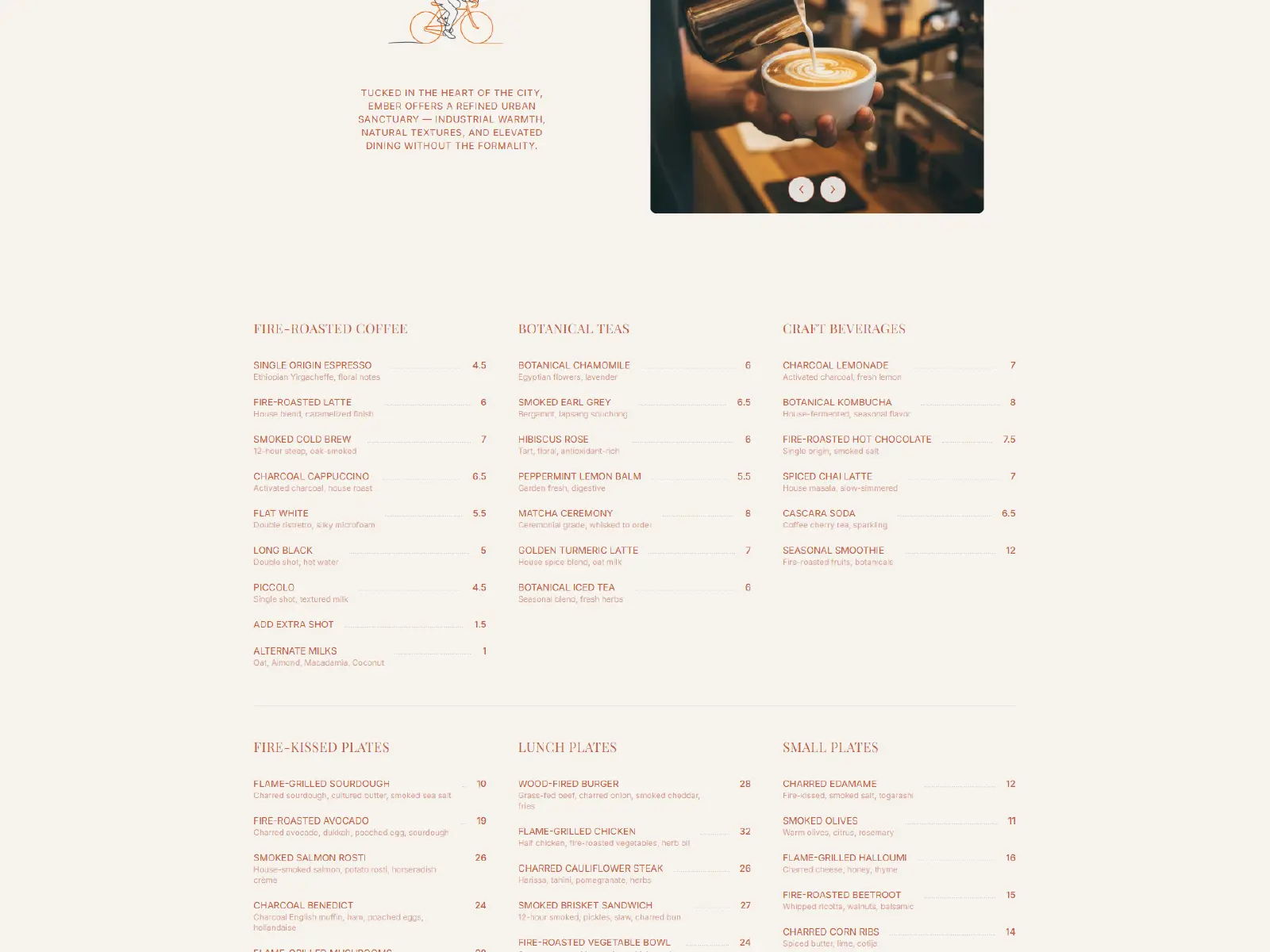 The website was designed to mirror Ember’s cafe experience. Colour, typography, and spacing were used deliberately to create warmth and restraint, allowing photography and menu content to lead. The structure emphasises story, ingredients, and seasonal offerings, while keeping reservations and key information easily accessible. The result is a digital presence that feels calm, intentional, and aligned with the restaurant’s identity.